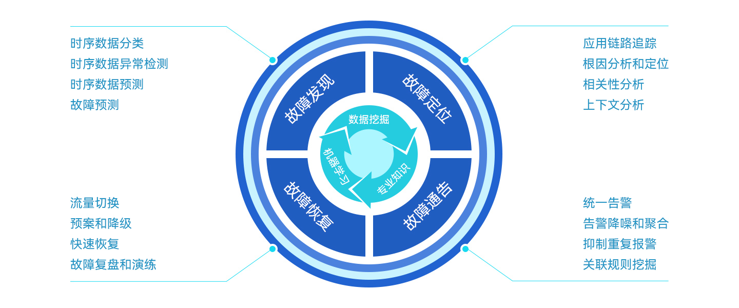 提供告警并降矂,抑制誤報(bào)或重復(fù)報(bào)警;故障恢復(fù);將故障復(fù)盤(pán)和演練,從而預(yù)測(cè)和防止故障。