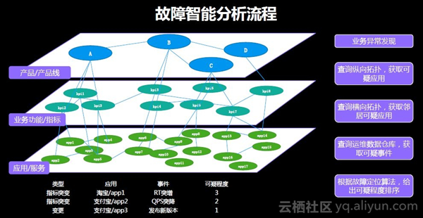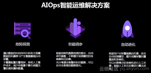 綜上,阿里的AIOps智能運(yùn)維解決方案有以下三大特點(diǎn):故障探測(cè)、智能調(diào)參、自動(dòng)進(jìn)化。故障探測(cè)中,精準(zhǔn)全面報(bào)警,鮮有誤報(bào)漏報(bào),沒(méi)有人工配置成本,所有流程自動(dòng)化學(xué)習(xí)。即使業(yè)務(wù)發(fā)生了巨大的變化,例如阿里的釘釘在這一年中的發(fā)展非常迅速,在三個(gè)月前業(yè)務(wù)量可能處于一個(gè)量級(jí),三個(gè)月后就上升到另一個(gè)量級(jí),該算法也會(huì)在極短的時(shí)間內(nèi)自動(dòng)適應(yīng),不需要人工修改調(diào)整閾值。智能調(diào)參是指根據(jù)趨勢(shì)預(yù)測(cè)的變化自動(dòng)調(diào)節(jié)參數(shù)。自動(dòng)學(xué)習(xí)是指,當(dāng)大家對(duì)是否報(bào)警持有爭(zhēng)議時(shí),可以采取不同靈敏度報(bào)警方案,并且將報(bào)警結(jié)果反饋回算法,那么該算法會(huì)不斷學(xué)習(xí)報(bào)警的尺度,優(yōu)化報(bào)警模型,進(jìn)而提升故障報(bào)警的覆蓋面和準(zhǔn)確性。