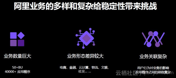 但更大的挑戰(zhàn)來(lái)自于日常阿里業(yè)務(wù)的多樣和復(fù)雜。首先,阿里業(yè)務(wù)數(shù)量巨大,包括2萬(wàn)多名技術(shù)工程師,50+ BU,40000+ 應(yīng)用程序。其次,業(yè)務(wù)形態(tài)差異較大。隨著阿里經(jīng)濟(jì)體的壯大,出現(xiàn)了許多與傳統(tǒng)電商、金融、云計(jì)算等不一樣的業(yè)務(wù)形態(tài),例如優(yōu)酷是文娛,釘釘是社交,還有阿里體育、阿里健康等更多新的業(yè)務(wù)。業(yè)務(wù)形態(tài)的差異會(huì)導(dǎo)致用戶行為的多樣性。并且阿里國(guó)際化業(yè)務(wù)例如LAZADA、速賣通AE等,也為監(jiān)控系統(tǒng)帶來(lái)了許多挑戰(zhàn)。最后,業(yè)務(wù)關(guān)聯(lián)復(fù)雜。程序之間需要互相調(diào)用,阿里的幾萬(wàn)個(gè)程序間的調(diào)用已經(jīng)構(gòu)成了非常復(fù)雜的網(wǎng)絡(luò),這種牽一發(fā)而動(dòng)全局的情況會(huì)給穩(wěn)定性帶來(lái)極大的挑戰(zhàn)。并且實(shí)際情況可能更為復(fù)雜,因?yàn)槌藘?nèi)部關(guān)聯(lián),還有外部關(guān)聯(lián)。例如用戶可能習(xí)慣使用淘寶的搜索框?qū)ふ蚁胍?gòu)買的商品,若某日搜索功能出現(xiàn)故障,那么便會(huì)直接導(dǎo)致淘寶交易量降低。這是因?yàn)榇蟛糠钟脩羰峭ㄟ^(guò)搜索功能進(jìn)入交易頁(yè),出現(xiàn)故障會(huì)導(dǎo)致用戶找不到其他措施進(jìn)行交易。應(yīng)用程序之間的鏈路復(fù)雜和用戶行為對(duì)業(yè)務(wù)的影響都會(huì)導(dǎo)致業(yè)務(wù)關(guān)聯(lián)復(fù)雜。